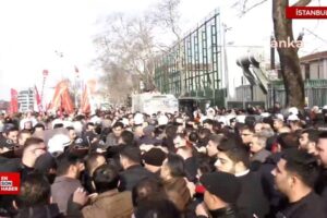 Hakkında başlatılan soruşturma kapsamında Çağlayan Adliyesi’nde tabir veren Ekrem İmamoğlu’na dayanak için gelen CHP’liler etrafta güvenlik tedbiri alan polislere saldırdı. Adliye bahçesinde arbede yaşandı.