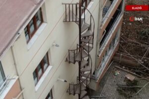 Bolu’nun beğenilen kayak merkezlerinden biri olan Kartalkaya’daki Grand Kartal Otel’de evvelki gün 78 kişinin hayatını kaybettiği yangında yangın merdiveninin olup olmadığı tartışmaları devam ederken, Elazığ’da 5 katlı bir binaya dışarıdan monte edilmiş yangın merdiveni görenleri hayrete düşürdü.