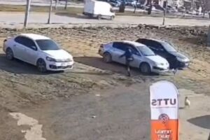 Görevli en sonunda anayolun karşısına geçerek kendini kurtardı.