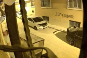 O anlar binanın güvenlik kamerasına saniye saniye yansıdı.