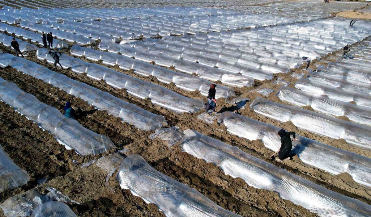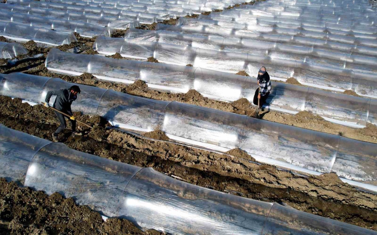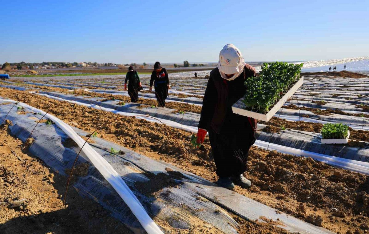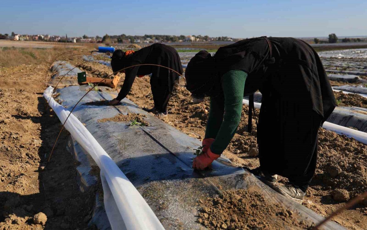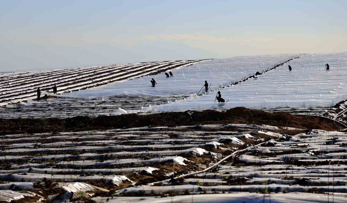 İşçilerin kimileri toprağı düzeltirken, kimileri fide çukurlarına gübre yerleştirdiği toprağı, fide ekimine hazır hale getirdi. Binbir emekle fideler toprakla buluşurken soğuktan korumak için üstlerini naylonla kapattı.