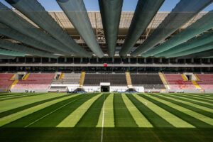 Zeminin korunması ve çimin sağlıklı gelişimini desteklemek maksadıyla statta gölgelik sistemi oluşturuldu.