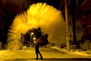 Soğuk havanın ne kadar tesirli olduğunu göstermek isteyen vatandaşlar havaya sıcak su serperek test etti.