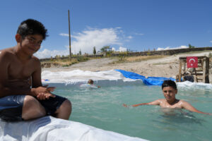 Denize kilometrelerce uzaklığı bulunan köyde çocuklar, her gün diledikleri üzere havuza girip, tatil yapıyorlar. Berham Karamanlı her gün, havuzdaki suyu değiştiriyor, paklığı yapıyor.