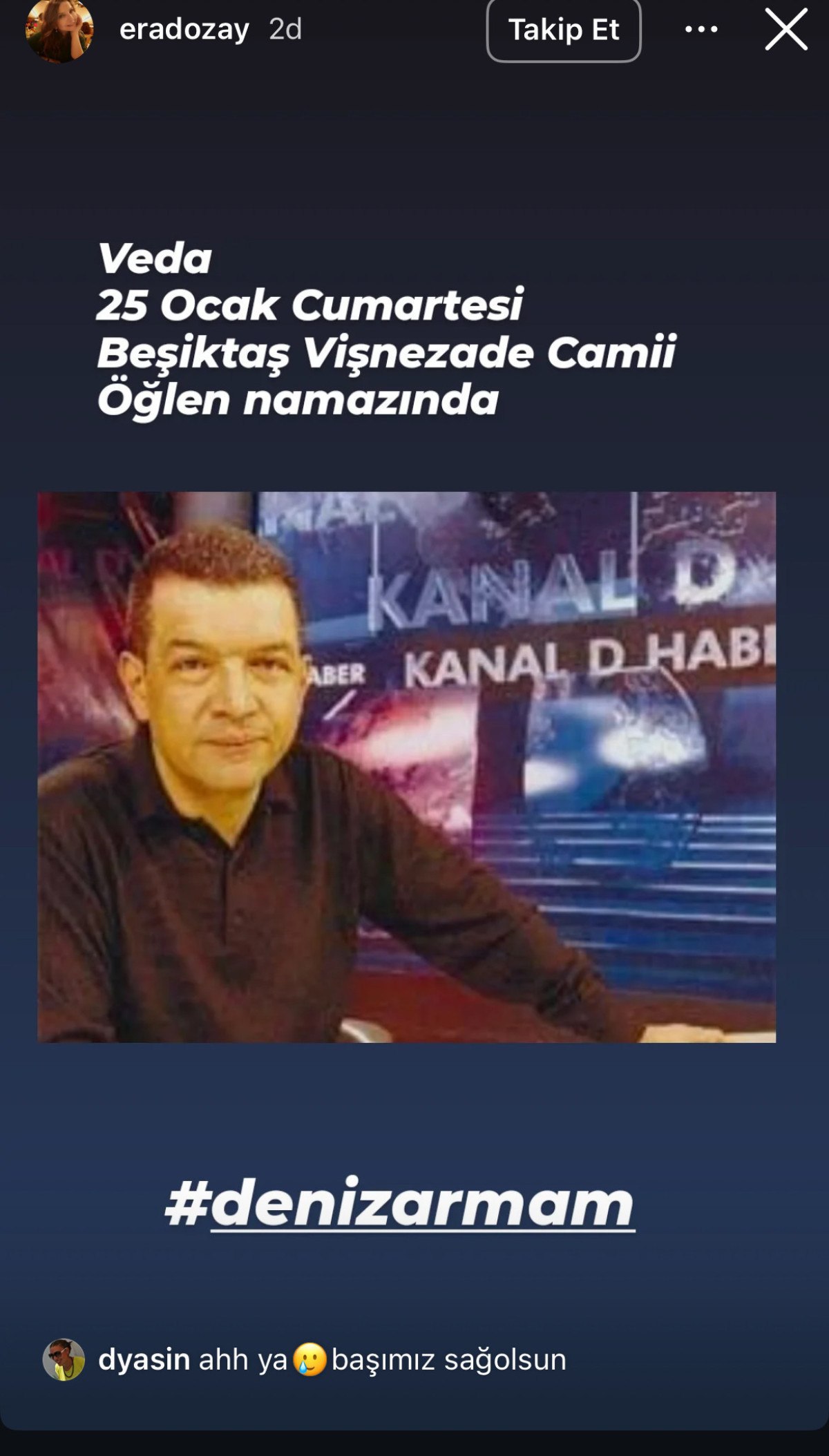 Deniz Arman’ın vefat haberini gazeteci Özay Erad paylaştı.
