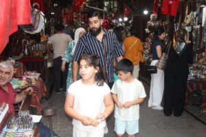 Yöresel eserler ile bakır eşyaların satıldığı Bakırcılar Çarşısı ve Almacı Pazarı’ndan alışveriş yapan turistler, çarşılarda bol bol fotoğraf çekti.