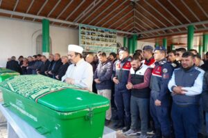 Cenazeye, cezaevinden özel müsaadeyle katılan baba Sinan Çelik de jandarma eşliğinde katıldı.