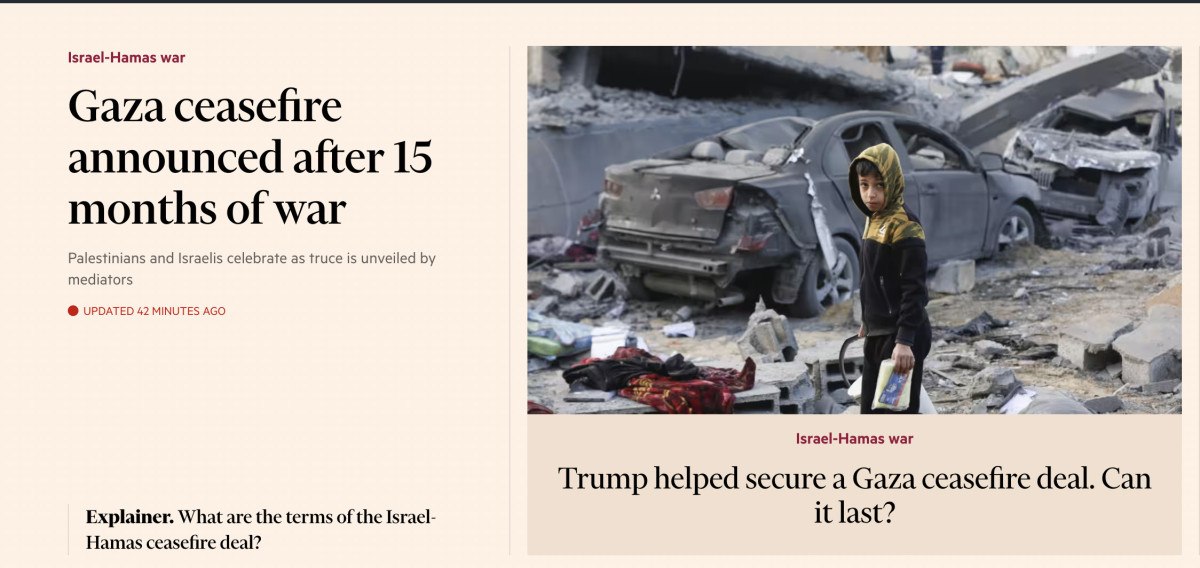 The Wall Street Journal, “İsrail ve Hamas, Gazze’de çatışmayı durduracak ateşkeste anlaştı” başlığını attı.