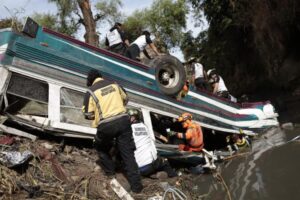 Guatemala’nın başşehri Guatemala’da 75 kişiyi taşıyan bir yolcu otobüsü, Puente Belice otoyol köprüsünden dereye düştü.