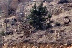 “Gümüşhane dağlarının süsü” olarak kabul edilen yaban keçileri sık sık kameralara takılmaya devam ediyor.