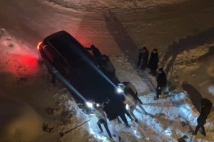 Kendi imkanlarıyla araçlarını hareket ettiremeyen şoförlerin yardımına etraftaki vatandaşlar yetişti.