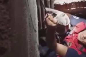 Hatay’ın Arsuz ilçesi Nardüzü Mahallesi’nde, 3 katlı bir binanın havalandırma boşluğuna kedi düştü. Yaklaşık 7 metre derinlikte mahsur kalan kediyi gören sahibi, çabucak 112 Acil Davet Merkezi’ni arayarak yardım istedi.