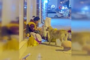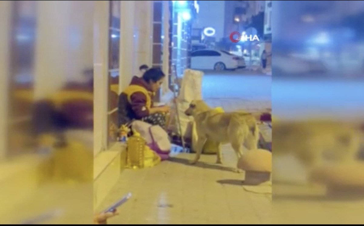 Hatay’da bir kadın yemeğini sokak köpeğiyle paylaştı