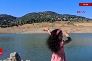 Hatay’ın Yayladağı ilçesinde orman yangınına müdahale ederken baraj gölünden su alan Sikorsky tipi askeri helikopterin pilotu, Hifa Sakarya’ya (5) el salladı.