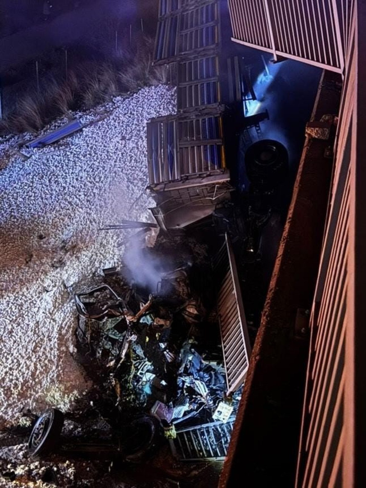 Kaza sonrası tır, köprüden aşağı uçarak alevlere teslim oldu.