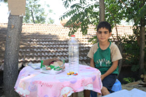 Ben 9 yaşındaydım, bu yıl 3’üncü sınıfa gideceğim. Burada dün su satmaya başladım. Sabah ağabeylerimle endüstriye gidecektik ancak ben küçüğüm diye beni almadılar. Beni almadıkları için ağladım sonra su satmaya başladım. Suları satıp kendime bisiklet alacağım. Bisikleti çok seviyorum, o yüzden bisikleti alacağım.