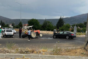 Isparta’nın Şarkikaraağaç ilçesi Isparta-Konya karayolu üzerindeki 101. Çevreyolu Caddesi sanayi kavşağında öğle saatlerinde meydana gelen kazada, Halil S. yönetimindeki yabancı plakalı araba ile birebir istikamette seyreden Ali K. idaresindeki traktör çarpıştı.