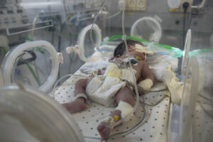 Durumu kritik olan bebek, Han Yunus’taki Nasır Hastanesi’nde ağır bakıma alındı.