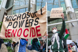 The Verge internet sitesinin haberine nazaran, Microsoft’un mevcut ve eski çalışanları, aktivistler ve bölge halkından oluşan ve “No Azure for Apartheid (Apartheid için açık gün yok)” isimli bir küme protestocu, Washington eyaletindeki Microsoft genel merkezinin önüne çadır kurdu ve pankartlar açtı.