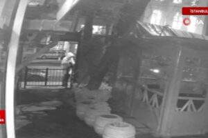 Sarıyer’de başını kapüşonuyla kapatarak yüzünü gizlemeye çalışan şahıs, kafenin önündeki lambaları kırarak oradan uzaklaştı. Yaşananlar güvenlik kamerasına yansıdı.