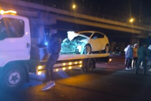 İstanbul’un Ümraniye ilçesi TEM Otoyolu’nda seyreden araba, önünde ilerlemekte olan yolcu otobüsüne arttan çarptı.