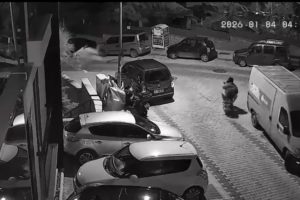Hırsızlık anı etraftaki bir binanın güvenlik kamerasıyla kaydedildi.