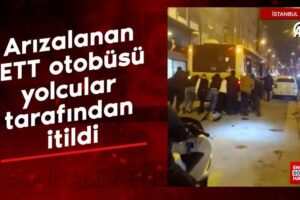 İstanbul’da arızalanan İETT otobüsünün yolcular tarafından itilmesi kamerada