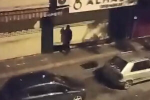 Görüntülerde kaydı yapan kişinin “Polisi orta çabuk” dediği anlar duyulurken, bu sırada şüphelilerin kuyumcu dükkanının kepenklerini kırmaya çalıştığı anlar görülüyor.