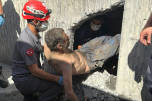 Ancak içerideki kişi bitkin olması ve alanın dar olması nedeniyle dışarı çıkarılamadı.