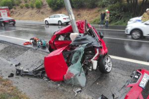 Sağlık gruplarının yaptığı birinci muayenede hurdaya dönen aracın şoförünün hayatını kaybettiği belirlendi.