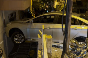 Yabancı asıllı U.M. isimli bayan şoför, park halindeki arabasını çıkarmaya çalıştığı sırada panik yaparak fren yerine gaza bastı.