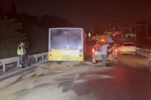 Kaza nedeniyle bir müddet trafiğe kapatılan yan yol, otobüs ve arabanın olay yerinden kaldırılmasının akabinde yine ulaşıma açıldı.