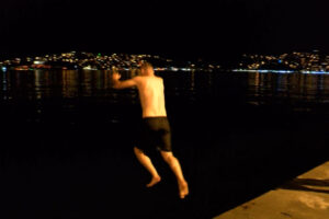 Yeniköy kıyısına gelen birtakım vatandaşlar, gece olmasına karşın denize girerek serinledi.
