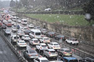 Anadolu Yakası’nda Kadıköy-Kartal ortasında D-100 kara yolu Ankara istikametinde kar yağışının tesiriyle trafik yoğunluğu yaşandı.