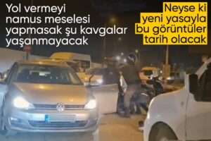 Sürücülerin birbirine girdiği, hengameye müdahale etmeye çalışan kuryenin ise motosikletinin devrildiği anlar bir öbür şoför tarafından cep telefonu kamerası ile kaydedildi.