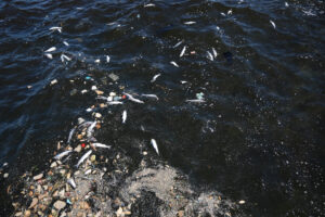 Yüz binlerce balık meyyit olarak kıyaya vururken, kentteki ağır koku da kendisini hissettiriyor.