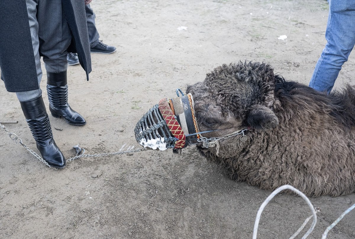 Müsabakalar öncesinde sahipleri tarafından alanda dolaştırılan develer, yapılan eşleşmeler sonrasında rakipleriyle gayret etti.