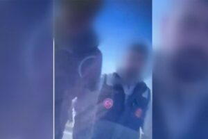 Öte yandan cep telefonu kamerasıyla yapılan kayıtta şüphelilerin aracın önünü kestikleri, arabanın camlarına vurarak küfrettikleri görülüyor.