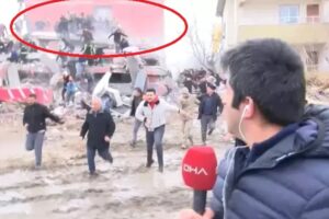 Depreme canlı yayında yakalanan muhabirler, birçok binanın yıkılışını kayıt altına aldı.