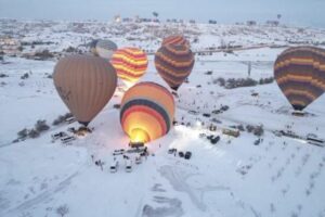 Perşembe günü başlayan ve vakit zaman tesirini sürdüren kar yağışı ve rüzgar Kapadokya’daki sıcak hava balon tiplerinin iptaline neden oldu.