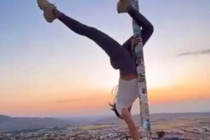 Türk bayrağının bulunduğunu direkte dans yapan turistin manzaralarının yayılmasının akabinde da Nevşehir Valiliği süratle harekete geçti.