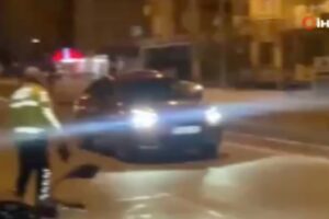 Polis memurlarının cadde üzerinde inceleme yaptığı esnada B.Ü. yönetimindeki bir araba, kayganlaşan yolda şoförün direksiyon hakimiyetini kaybetmesi sonucu denetimden çıkarak refüjü aşıp, karşı şeride geçti.