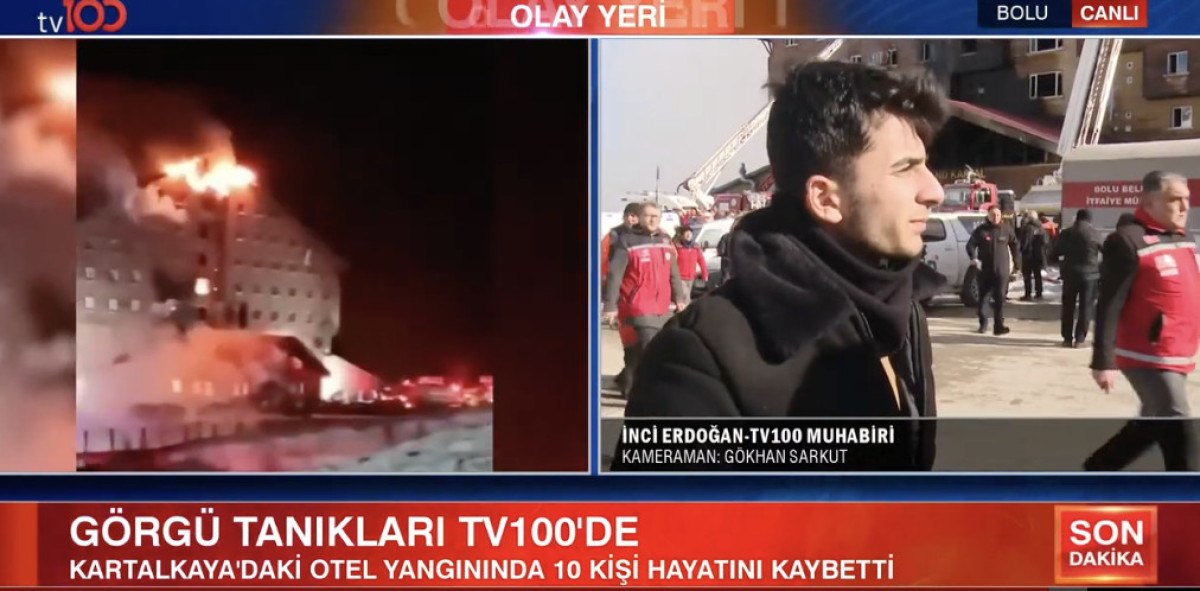Yangına ve çalışmalara ait gelişmeleri aktarmak için olay yerinde canlı yayın yapa TV100 grubu, görgü şahitleri ile röportaj gerçekleştirdi.