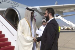 Geçiş devrinin Cumhurbaşkanı Ahmed Şara, Katar Buyruğu Pir Temim bin Hamad Al Sani ve beraberindeki heyetini, Şam Memleketler arası Havalimanı’nda karşıladı.