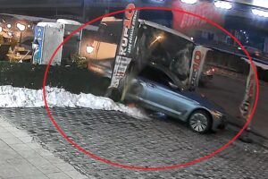 Öte yandan kaza anı etraftaki bir iş yerinin güvenlik kamerasına saniye saniye yansıdı.