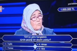1 Milyon TL pahasındaki o soru ise “TDK’ye nazaran hangisinin içinde geçtiği bir tabir yoktur?” oldu.