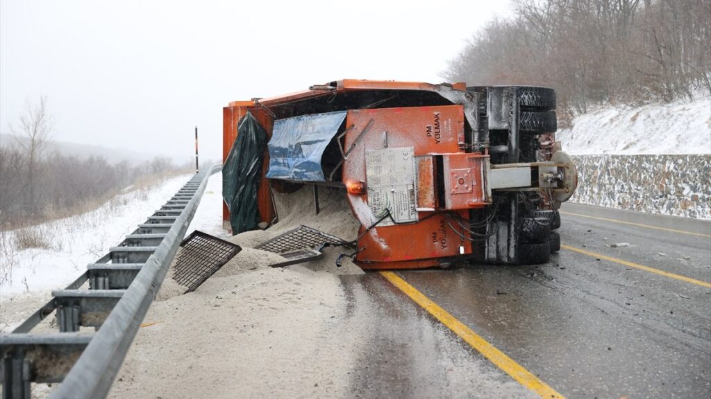 Karayolları 15. Şube Şefliği’ne ilişkin bir kar küreme aracı, Mahyatepe mevkisinde devrildi. Kazada araç şoförü ve araçta bulunan bir işçi yaralandı. Yaralılar, ambulanslarla Pınarhisar Devlet Hastanesi’ne sevk edildi.