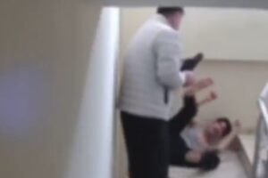 O feci dayak anları, apartmanda bulunan güvenlik kamerasına yansıdı.