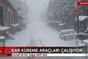 Kocaeli’de Samanlı Dağları’nın 1640 rakımlı doruğunda bulunan Kartepe’de kar yağışı tesirli oldu. Tepeye giden yollarda belediye grupları ulaşımda aksama yaşanmaması için kar küreme araçlarıyla çalışma başlattı.