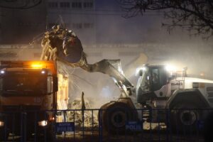 Arama kurtarma faaliyetlerinin sona ermesinin akabinde enkaz kaldırma çalışmalarına geçildi. Çok sayıda takım, iş makineleriyle enkazı kamyonlara yükleyerek alandan tahliye etti. Çöken binanın bulunduğu noktada ise derin bir boşluk oluştu.